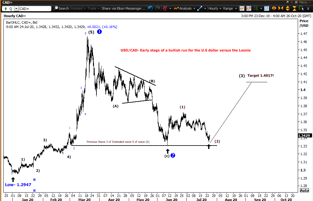 We feel that the USD/CAD could be in an early stage of a bullish run towards $1.4017 in the coming months.